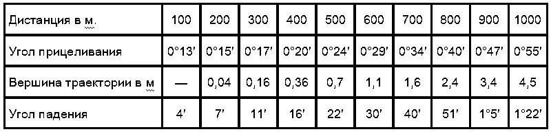 Из таблицы видно, что человек в положении «лежа» поражается настильным огнем на расстоянии 400 м, стоящий или сидящий на расстоянии 700 м. На расстоянии 800 м поражаемое пространство равно 70 м. На больших дистанциях поражаемое огнем пространство невелико, так как настильность огня исчезает.