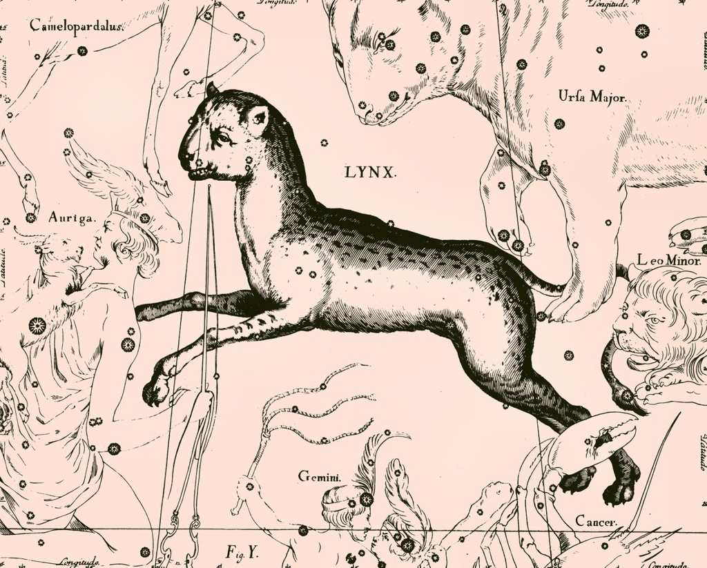 Три их этих созвездий: Рысь, Жираф и Малый Лев введены в Звёздный Атлас впервые Яном Гевелием (1611 1687 годы), градоначальником Гданьска (Польша) и наследственным пивоваром. Вдова Гевелия издала Звёздный Атлас в 1690 году, уже после смерти астронома.