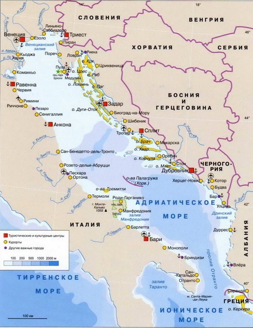 Южнее города Римини расположен порт Анкона, откуда Данте с Вергилием пересекают Адриатическое море на корабле (ладье Харона). Венецианский залив с портами Венеция и Триест, порты Хорватии и Черногории, пролив Отранто блокированы испанским флотом во время войны за Австрийское наследство (1740 1748 годы). Следуя в сторону Османской империи, поэты направляются в порты Адриатики, находящиеся под её контролем, скорее всего порт Дуррес на территории Албании.
