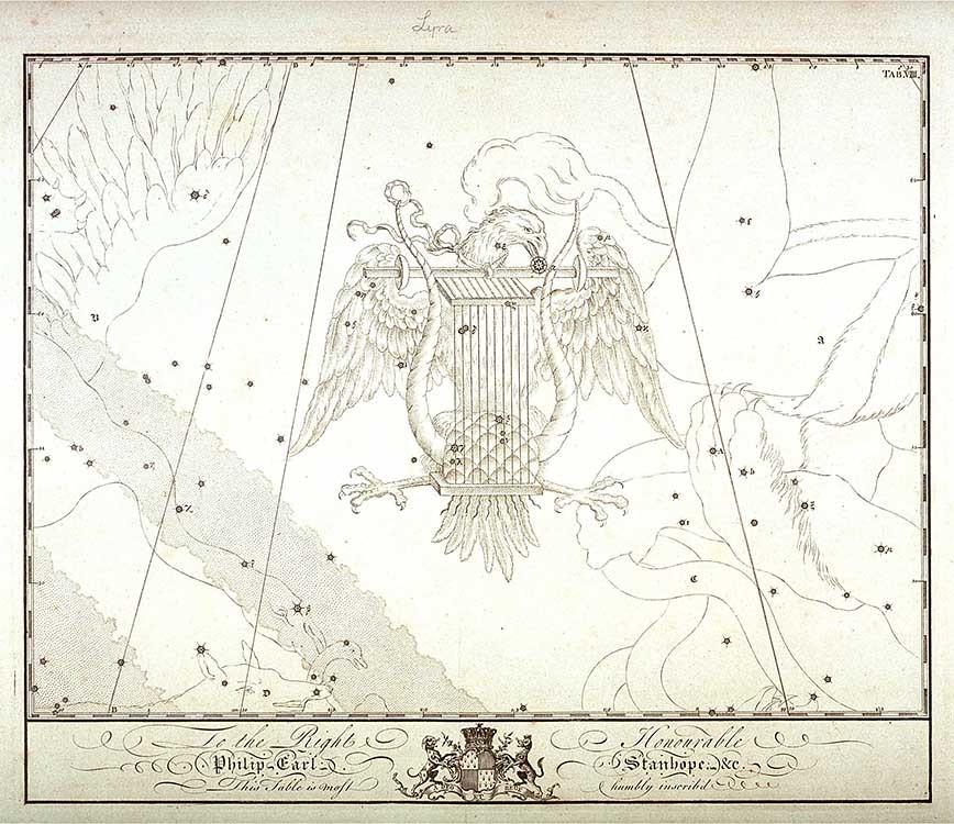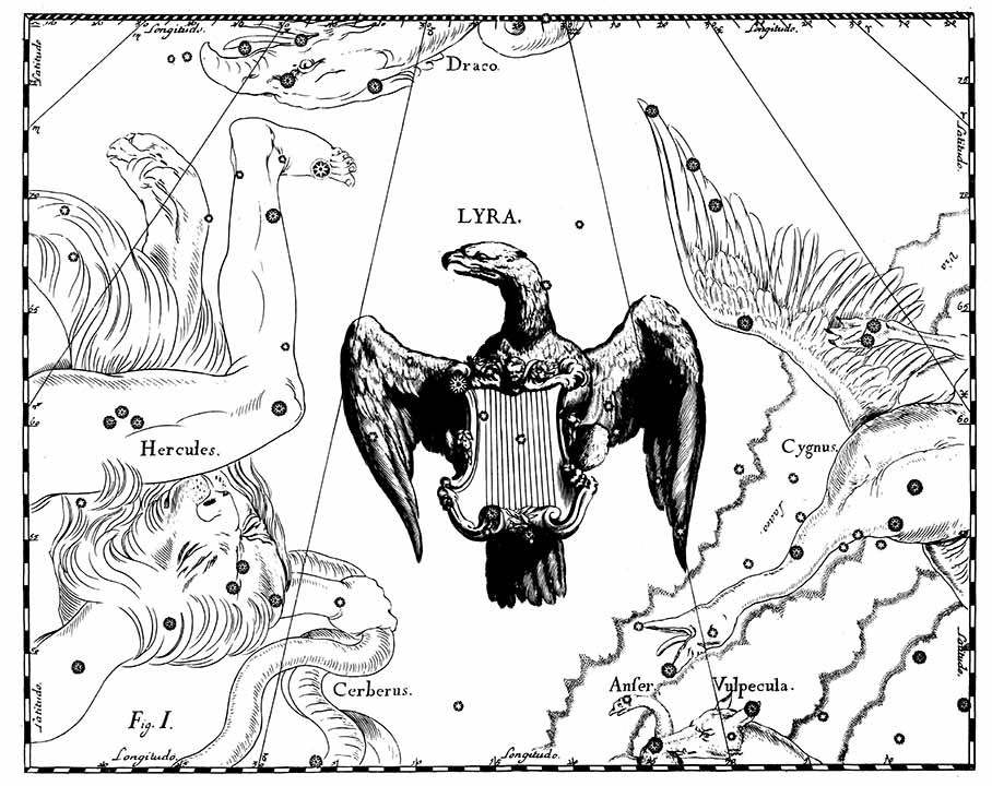 А. IV. 4 Созвездие Лира (LYRA) из Атласа «Uranographia» Яна Гевелия 1690 года.
