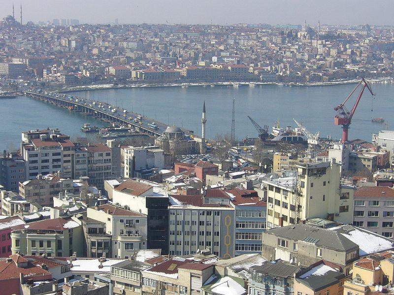 А. VIII. 3 Современный вид Стамбула (Константинополя) при взгляде на Запад с башни Галата зимой. Виден снег на крышах зданий.