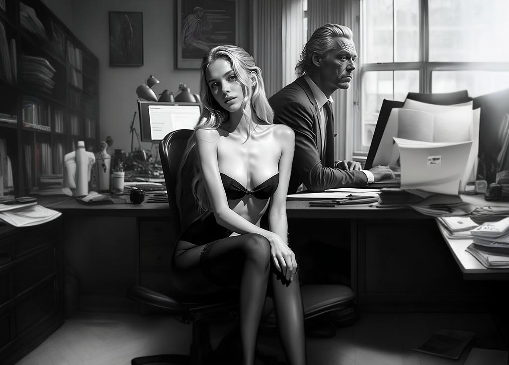 Девушка покорно задрала свою короткую юбку, раздвинула ноги на ширину плеч, облокотилась руками о массивный, рабочий стол отца и опустила голову. Белокурые локоны волос заструились вниз, спрятали её лицо и прикрыли горящие от стыда щеки.