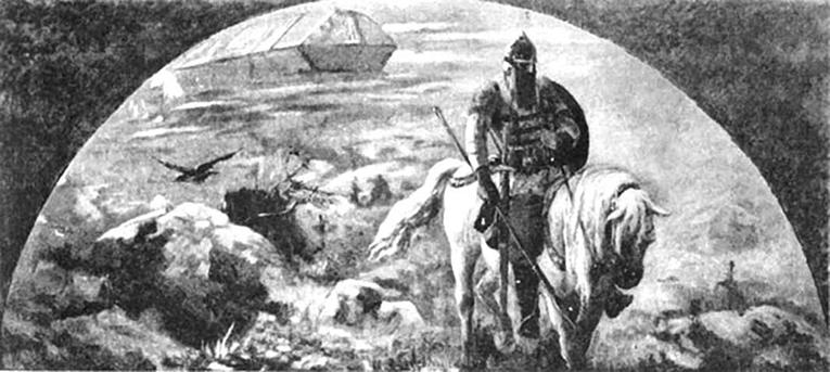 Первым в задуманной Рерихом серии стало полотно «Гонец: восстал род на род», 1897 г. (см. на вкладке). Эта картина планировалась как своеобразный пролог. «Гонцу» была суждена особая роль еще и потому, что это произведение стало дипломной работой молодого художника при окончании Академии художеств.