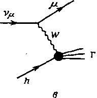Если l=νμ (нейтрино), a l'=μ (мезон) (рис. 12, в ), то процесс обусловлен слабым заряженным током