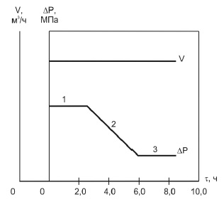 Рис. 12 б Изменение гидравлического сопротивления горизонтального канала во времени