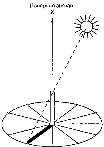 Стрелки этих гигантских часов создает Солнце. Такой стрелкой может служить любая тень в ясную погоду. По мере того как Солнце встает на востоке, двигается по небосводу и садится на западе, тени укорачиваются и перемещаются, а к вечеру, продолжая свое движение, вновь становятся длиннее.