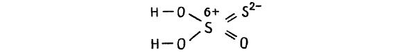 В ней один атом серы положительно шестивалентен, другой отрицательно двухвалентен. Тиосерная кислота довольно редкий пример неорганического соединения, где два атома одного и того же соединения имеют различные валентности. В отличие от серной кислоты сернистая и тиосерная в свободном виде не существуют.