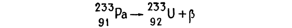 Следующая группа превращений связана с испусканием ядрами бета (β) частиц, или электронов. Этот процесс обязан своим происхождением избытку нейтронов в ядрах некоторых атомов. Схему его можно представить следующим образом: нейтрон протон + электрон, или n p + e то есть нейтрон переходит в протон, и образующийся при этом электрон покидает ядро. Нетрудно догадаться, что при бета-распаде образующийся элемент располагается в периодической системе на одну клетку вправо, а атомный вес остается без изменения, поскольку масса электрона близка к нулю. В качестве примера можно привести превращение протактиния в уран: