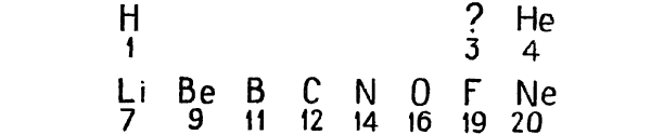 Опыт изучения легких элементов свидетельствовал, что все они широко распространены в природе. Поэтому высказывалось мнение о невозможности найти еще какие-либо новые, более легкие элементы. Однако начиная с 1894 года была открыта группа инертных газов, в том числе гелий, имеющий малый атомный вес (4). Вновь открытые элементы оказались химически недеятельными, а потому и малораспространенными. Таких элементов химики раньше не знали.