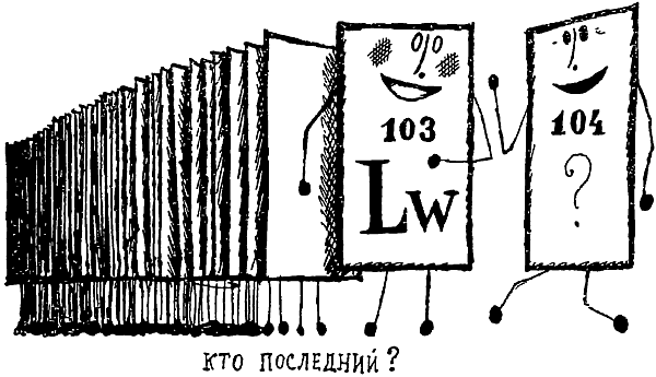 Были времена, когда открытие нового химического элемента оказывалось событием и химики начинали подробно изучать его свойства, искать возможности практического применения. Но в книге об истории открытия элементов глава о трансуранах будет носить совершенно особый характер. Если свойства нептуния и плутония изучены хорошо, а плутоний к тому же одно из основных ядерных горючих, если написаны монографии по химии америция и кюрия, то мало что можно сказать об остальных трансурановых элементах. Пока еще они достояние только физики. Ведь в самом деле, о каком изучении свойств можно говорить, если ученые синтезировали сначала лишь 17 (!) атомов сто первого элемента менделеевия, а для сто второго и сто третьего счетчик зафиксировал лишь единичные атомы.