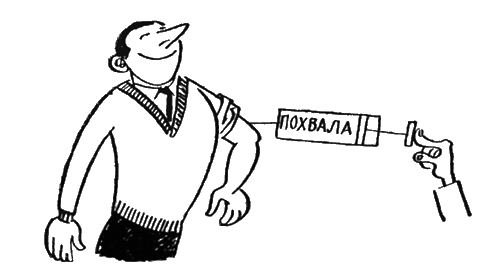 В наши дни похвала дефицитный товар. Редко доведется ее услышать, а ведь нужда в ней большая. Доказано, что от похвалы улучшается цвет лица, глаза приобретают блеск. Похвала отличное средство для успокоения нервной системы; она поднимает. тонус, и даже но это пока лишь предположение от нее проходит плоскостопие. Обычно похвалу можно получить только путем обмена, то есть по принципу «Похвали меня похвалю тебя», но всегда приходится переплачивать.