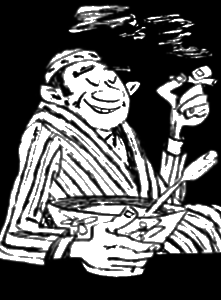 стол размером два на два метра. Справа, возле входа в гостиную, будет весьма эстетичен сундук, покрытый попоной. Шифоньер и горка с фарфором должны не только составлять единый ансамбль, но и закрывать на две трети окно. Для гостей, которым не хватит места на сундуке, следует поставить у левой стены две широкие лавки. Иконы по углам, бочонок с квасом и миниатюрная модель русской печки для приготовления коктейлей завершат убранство гостиной.