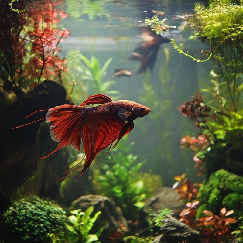 Недалеко от кровати, у самой стены растянулся плоский аквариум с огненными вуалехвостами. Они прятались за вёрткими, похожими на червяков водорослями, спокойно дремав в ворохе суетливых пузырьков воздуха.