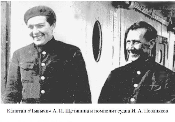 В начале ноября 1936 г. А. И. Щетинина и И. А. Поздняков обратились к начальнику АКО И. А. Адамовичу и руководителю политсектора общества А. Р. Орлинскому с рапортом о выполнении судном годового задания. «Разрешите донести Вам, что пароход «Чавыча», участвуя первый год в перевозках пассажиров и грузов флотом АКО, досрочно выполнил свой план годовых перевозок, а завершив свой рейс 4 к 9-му ноября сего года, будет иметь перевыполнение на 3,3 %.