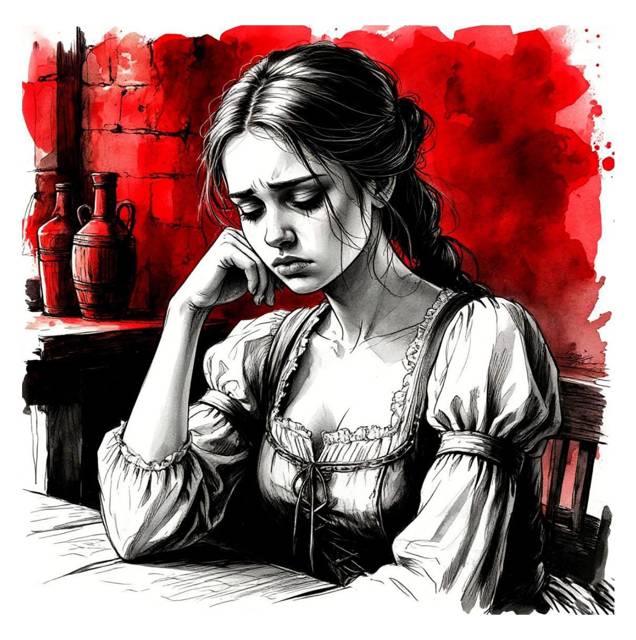 Через минуту в зал вошла перепуганная немолодая уборщица, служанка трактирщика, которая вела за руку девушку.