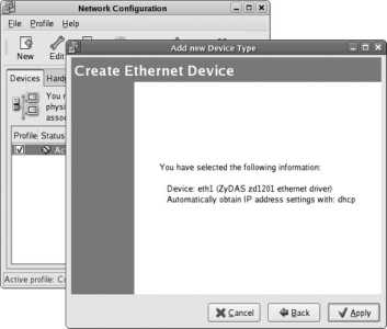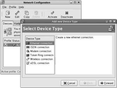 Use the default Ethernet connection option for any LAN connection, including cable modem connections as well as all DSL connections made through a router or gateway device. Click Forward to proceed to the device-selection window in Figure 3-8 .
