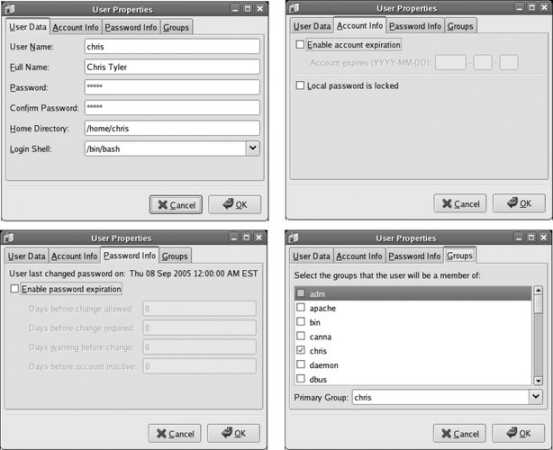 Once you have filled in all of these fields, click OK. You will be returned to the main User and Group configuration window ( Figure 4-8 ).