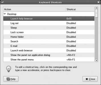 Figure 2-8. GNOME Keyboard Shortcuts window