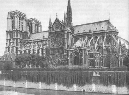 Почти шесть веков прошло с тех пор, как был он воздвигнут, и Париж преобразился благодаря его стройной громаде, воцарившейся над городом. Во много раз увеличилась за эти века столица Франции, украсилась многими другими памятниками, знаменитыми на весь мир, но Нотр-Дам по-прежнему главенствует над ней, по-прежнему как бы служит ее символом, по-прежнему воспринимается нами как одно из высочайших воплощений французского художественного гения. Давно уже далеко на запад переместился центр города, давно уже этот собор не центр его общественной и политической жизни, и мы забываем, что он призван был некогда олицетворять собой идею монархии, восторжествовавшей при покровительстве церкви (первый камень собора был заложен в 1163 г. французским королем и специально прибывшим в Париж римским папой, а много веков спустя тоже в присутствии папы в Нотр-Дам короновался Наполеон). Но мы знаем, что, подобно пирамидам Египта, подобно Парфенону в Афинах или константинопольской Софии, парижский собор Нотр-Дам достоин не только в веках, но и в тысячелетиях свидетельствовать об идеалах и вековой художественной культуре создавшего его народа.