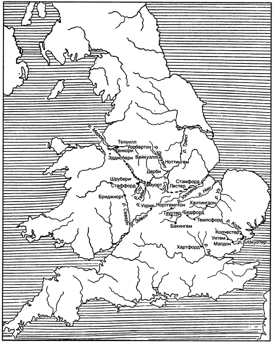 и, следовательно, что слово «бург» соответствовало более позднему понятию «замок». Неудивительно, что на всех пяти известных в настоящее время участках, где бург располагался на обоих берегах реки, впоследствии были воздвигнуты нормандские замки. Иначе дело обстоит с земляными укреплениями в Хартфорде и Бедфорде, а также с замками в Бакингеме и Стэмфорде, о которых сохранились сведения. Все они принадлежали частным лицам и представляли собой части оборонительной системы бургов, однако отличались друг от друга. Крепость Вильгельма Завоевателя в Ноттингеме претерпела значительные изменения, прежде чем предстать в ее нынешнем виде. Возведенная на холме из песчаника, она находится выше северного бурга, где король Эдуард собрал и англичан, и датчан с целью организовать совместную оборону .