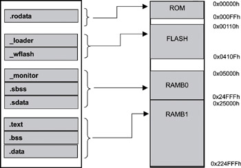 · The loader program is usually part of the system program that executes at startup. The _loader and the _wflash sections are allocated into flash memory because the loader code can be updated with new versions that understand more object formats. You need the flash memory programmer for this purpose, which can also be updated. Therefore, section _wflash is allocated into the flash memory as well.