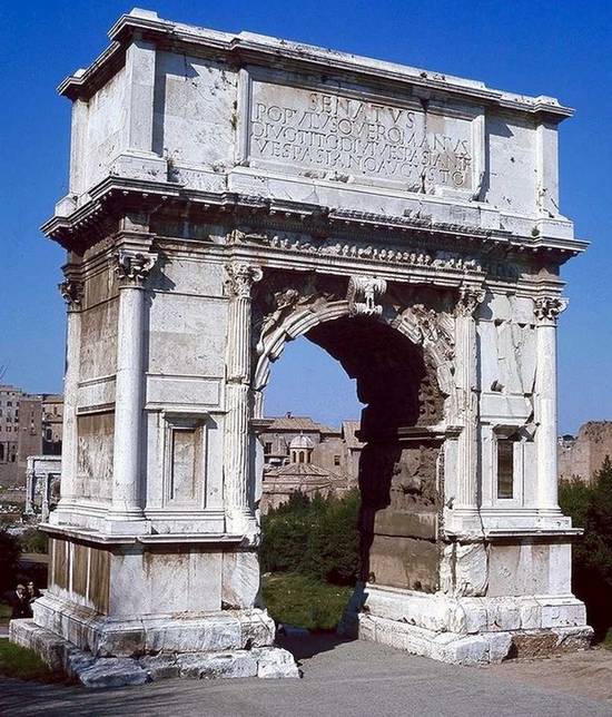 Такая арка была воздвигнута в 81 году в память триумфа императора Веспасиана Флавия и его сына молодого полководца Тита Флавия.