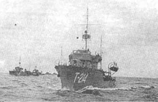 В авангарде шла Группа поддержки, которая представляла собой 3-й дивизион эсминцев (два лидера «Москва» и «Харьков» и три эсминца проекта 7у "Смышленый", "Сообразительный" и "Сердитый").