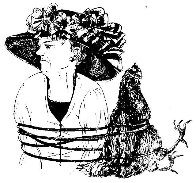 НУ тётушки Терезы аж дыхание перехватило, чему были свои причины. Во-первых, вышеприведённое неслыханное оскорбление сравнить её с профессором философии, мирно роющимся у её ног в поисках червячков! Вторая причина была куда существенней: попробуй вздохнуть, когда тебя туго-натуго связали верёвками. Путы полагались и профессору,