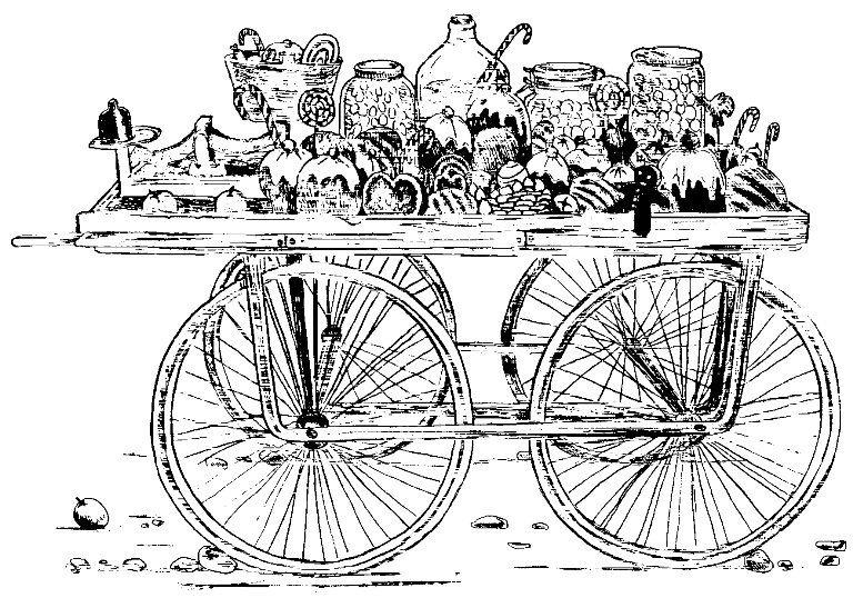 Деточка, золотце! пропел Сласто Баста медоточивым голосом. Не желаешь ли отведать моих вкусностей? он указал на тёмно-янтарную гору медовых тянучек, белеющую груду безе из белков, взбитых с прозрачным цветочным мёдом, и высящийся холмик мелкого медового печенья цвета спелого ореха. С верхней планки ларька свисали банки с сотовым мёдом, а вдоль прилавка были разложены фигурные медовые пряники. Каких пряников тут только не было! Сердечко в виде тёмно-коричневой рамки для взаправдашнего зеркальна исстари заветный подарок для любимой девушки. Пряничные барышни были до того похожи на настоящих, что, казалось, вот-вот раскроют свои
