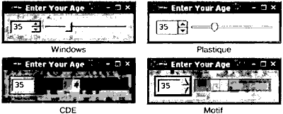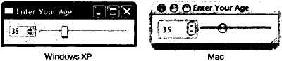 Строки 10 и 11 создают виджеты QSpinBox и QSlider , а строки 12 и 13 устанавливают допустимый диапазон изменения их значений. Мы вполне можем допустить, что возраст человека не будет превышать 130 лет. Мы могли бы передать window в конструкторах QSpinBox и QSlider , указывая на то, что window должен быть их родительским виджетом, но здесь это делать необязательно, поскольку система компоновки