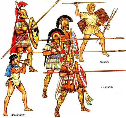 В V веке уже везде были гоплиты. Фактически, именно о них в основном идет речь при описании конфликтов. Гоплиты хребет, голова, задница, и даже крылья полисных армий. Гоплон круглый выпуклый щит. По сути гоплит это, с некоторой натяжкой, щитовик. Их изредка считают по «копьям», но все же именно щит является определяющей характеристикой воина. Ксенофонт, в самом конце V-го века рассказывает о смотре, который устроил греческим наемникам персидский царь Кир, и явно подчеркивает их крутость: «На всех эллинах были медные шлемы, пурпурные хитоны и кнемиды, а щиты были вынуты из чехлов.»