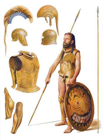 Щиты и шлемы упомянуты, остальное вооружение нет. Ничего не сказано и про панцири. А Ксенофонт не зря отец истории он любил подробности. Например, не упускал возможности просветить будущие поколения с кем Кир вчера «сошелся», по мнению местных сплетников. Я подозреваю что классические современные изображения гоплитов поголовно в «анатомическом панцире» (по гречески «гелоторакс»), это некоторое преувеличение.
