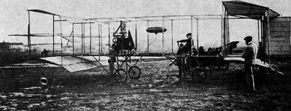 Рис. 2.8.Французский тандемный биплан (1907 г.). Отметим опущенный вниз носок поверхности ПГО.
