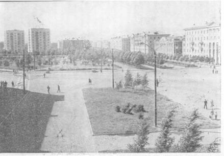 центрального универмага, построенное в 1966 году. На площади разбиты сквер, клумбы,