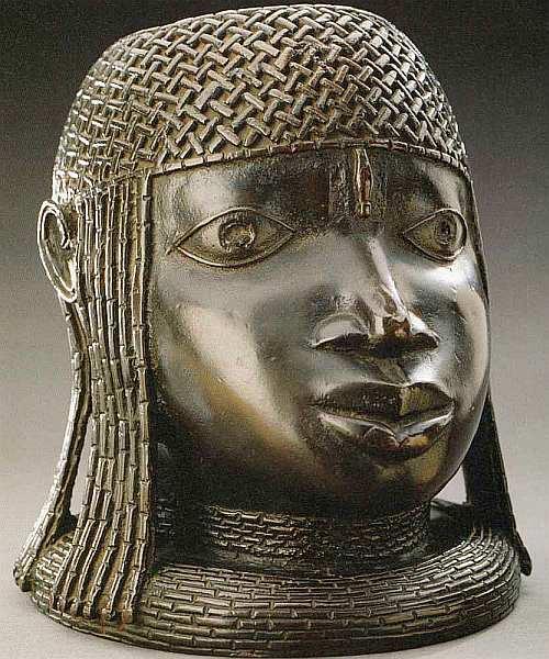Данный превосходный образец латунной скульптуры XVI столетия изображает одного из королей Бенина. Это царство на территории современной Нигерии было одним из центров ваяния. Интересно взглянуть на необычную форму головы персонажа. Линии черепа очень мягкие, мастерство отливки совершенно, такой технике позавидовал бы любой европейский ваятель. Детали облика короля выполнены с большой тщательностью, ведь они являлись символами и одновременно оберегами правителя. Скульптурная голова традиционно устанавливалась на алтарь, у которого поминали предков племени.