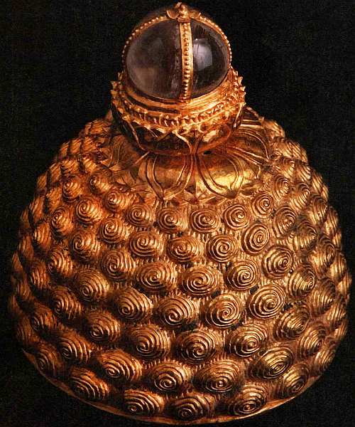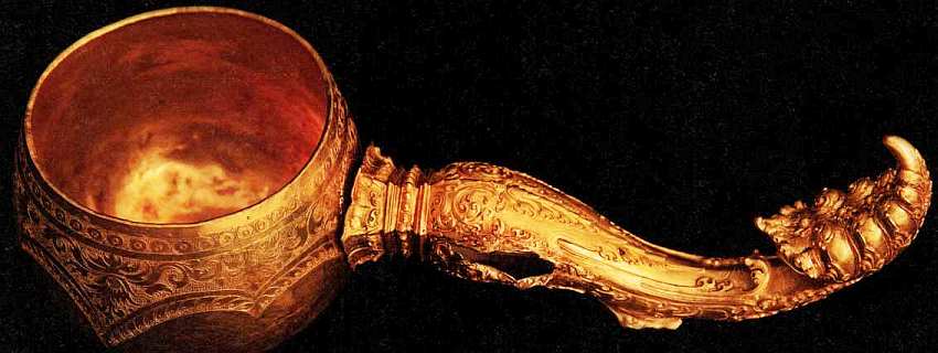 В кладе из деревни Вонобойо находился золотой ковш. Его резервуар сделан в виде половинки кокосового ореха, а ручка представляет собой стилизованную верхушку стебля папоротника. Верхняя часть емкости декорирована тщательно выгравированными цветами лотоса, по краю нанесена надпись с обозначением веса сосуда. Рукоять богато украшена рельефным растительным орнаментом. Исследователи предполагают, что такой предмет, представлявший собой подлинное произведение искусства, использовался для ритуальных целей: из него могли наливать масло на жертвенник или совершать какие-либо церемонии омовения. Показательно, что такие ковши из настоящей скорлупы кокосового ореха и бамбука повсеместно используются в настоящее время в деревнях Явы.