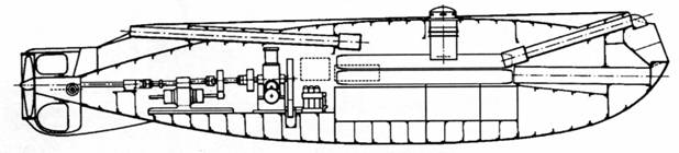 Во время гражданской войны в США (1862-1865 гг.) американские инженеры Джеймс Макклинток и Бостер Вотсон под руководством Горацио Ханлея (H.L.Hunley) построили для Южных штатов несколько железных подводных лодок длиной по Юм и диаметром 1,8м. Лодки имели цилиндрические корпуса, заостренные к носу и корме. Одни из них приводились в движение паровой машиной, другие вручную с помощью гребного винта. В качестве оружия на лодках использовались шестовые мины. Небольшие размеры и малая остойчивость предопределили плохие мореходные свойства лодок Ханлея.