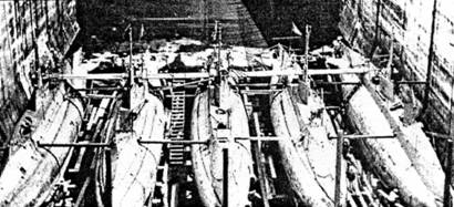 Американские подводные лодки во время шлюзования в Панамском канале. Снимок периода Первой Мировой войны.