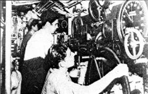 Центральный пост. Операторы управления рулями глубины и заполнением балластных цистерн.