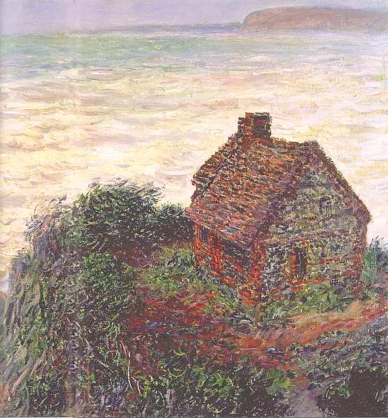 пейзаж с изображением дома таможенника. Известно, что Моне рисовал это небольшое жилище не один раз, причем возвращался к нему в своих полотнах с перерывами в несколько десятилетий. Один из холстов с тем же сюжетом хранится, например, в Роттердаме в музее Бойманса-ван Бёнингена. Мастера привлекало одинокое расположение домика, его романтическая отстраненность от мира. Исследователи видят в этом пристрастии одну из основных черт характера художника: он всегда стремился к покою и предпочитал хорошо знакомые места, вселявшие в него уверенность. Немаловажную роль в выборе сюжетов в начале 1880-х сыграло трагическое обстоятельство: в 1879 умерла жена живописца. После этого в его работах появилось больше ноток тревоги, тоски, меланхолии, грусти.