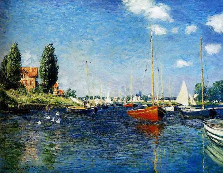 Данная картина может считаться классикой этого стиля. На ней в моментально узнаваемой манере изображена Сена у местечка Аржентей. Эту местность недалеко от Парижа художник запечатлел на большом количестве полотен. Именно здесь он начал работать в лодке, оборудованной под ателье, поэтому наследие мастера за этот период представляет собой почти исключительно пейзажи. Он создавал их непосредственно с натуры в разную погоду и время суток. Живописца