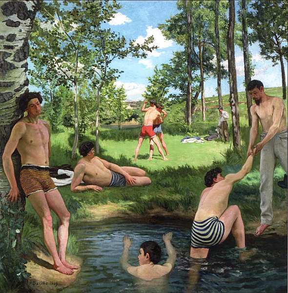 Талант Базиля сформировался под непосредственным влиянием таких мэтров, как Эжен Делакруа, Клод Моне, Огюст Ренуар, Поль Сезанн и других великих мастеров Франции. В своих работах художник смело экспериментировал с композицией, цветом, светом и перспективой. На данном полотне виден его интерес к ультрареалистическому изображению дневного освещения, что на несколько десятилетий предвосхитило поиски гиперреалистов XX века. Жесткая геометрия перспективы и почти скульптурный натурализм в изображении обнаженных тел отличали манеру живописца от принятой в то время мягкости импрессионистических мазков. Авторский стиль мастера до сих пор интригует знатоков искусства.