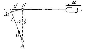 Анализ рис. 1.5б показывает, что при < снос будет минимальным, если скорость лодки относительно берегов направлена по касательной к окружности радиуса Сравнивая изображённые на этом рисунке подобные треугольники, находим минимальный снос лодки min: