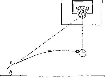 Здесь - высота кольца над точкой бросания теннисного мяча, а ²-² представляет собой расстояние до кольца по горизонтали (рис. 4.2).