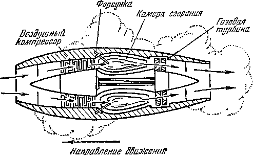 воздуха, сжатие его турбокомпрессором, впрыскивание горючего, горение и, наконец, реактивный выхлоп.