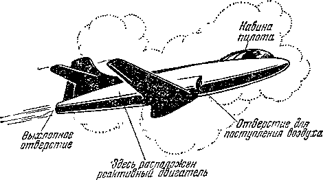 Рис. 27. Самолёт с воздушно-реактивным двигателем.