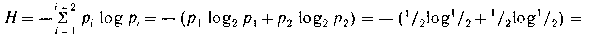 Пример IV. Чтобы определить энтропию фразы 2, достаточно подставить в общее выражение примера II реальные значения вероятностей букв в русских текстах (Po= 0,09, Pф=0,002 и др.). В результате такой подстановки получим значение энтропии около 4 бит.