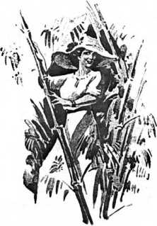 Должно быть, я действительно не трусом родился, так как не потерял присутствия духа, а, наскоро выхватив патентованный нож, разрезал не без труда веревку, в то же время ощущая в левой руке страшную боль. Но о руке я не думал; приведенный в страшную ярость таким сверхъестественным нападением, я грозно махал ножом во все стороны, ожидая врага. Но враг не показывался и не нападал больше, и даже замеченной мною веревки не было видно, не говоря уже о присутствии Тугов , которым я приписал это все приключение. Тогда в паническом ужасе я схватил на руки бесчувственную кузину и бросился бежать к дому.