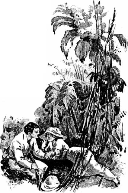 Мы перешли через сад, прошли пальмовую рощу, окруженную высокой изгородью и, наконец, через калитку вышли на небольшую прогалину, за которой сплошной стеною возвышался тропический лес, переплетенный повсюду лианами.