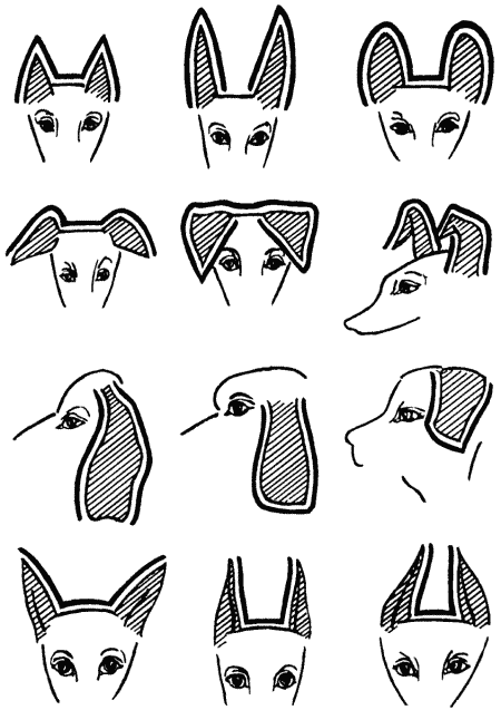 1. Стоячие уши собак концами должны быть направлены вверх и немного вперед и отвесно стоять по отношению к черепу, соразмерно голове они бывают большими или маленькими и, помимо величины и формы, определенной стандартом, могут варьироваться по этим признакам внутри породы, что связано не только с уровнем селекции, но и с процессом кормления и выращивания. Например, отсутствие или недостаток в рационе щенка минеральных добавок могут привести к слабости хрящей и влиять на постав ушей. Наоборот, излишек минеральных подкормок для пород с висячими ушами изменит их положение в противоположную сторону.